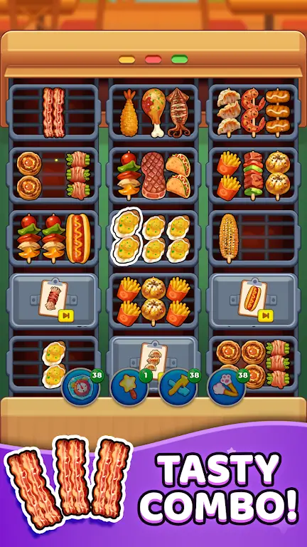 1. 趣味玩法独特,通过拖拽分类食材组合,在烧烤架上搭配创造独特烧烤串,考验策略思维,享受烹饪乐趣,成功配对超有成就感。