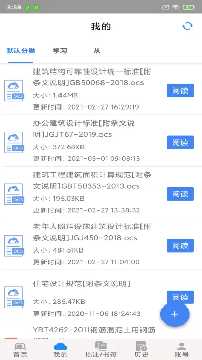 OCS云阅读是为建筑界朋友提供国家规范标准电子版服务的软件。有多种版本,支持跨平台同步阅读进度、批注书签。能同屏对比查看标准正文与条文说明,还有护眼换肤等功能,提供海量建筑资料。