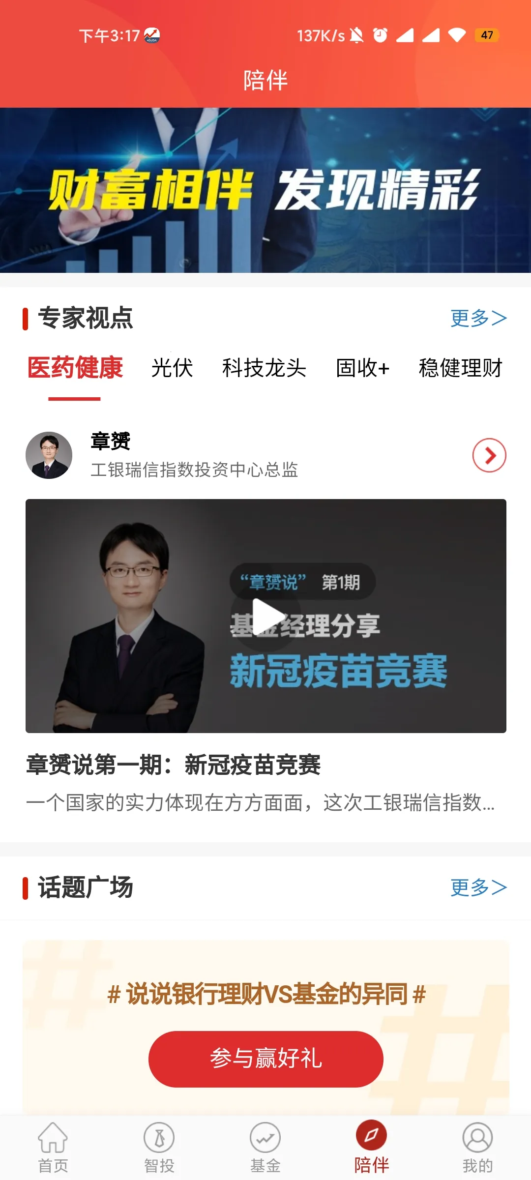 4. 陪伴服务专业:有每周市场简评、基金经理SHOW、基金学堂、话题广场等,有趣又有料,助您深入把握市场机会。