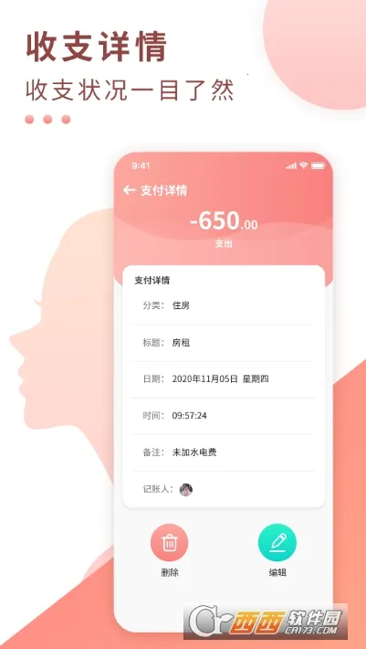 4. 随时随地便捷记账:采用无纸化记账模式,可随时随地记录消费数据,详细备注资金流向,方便又高效。
