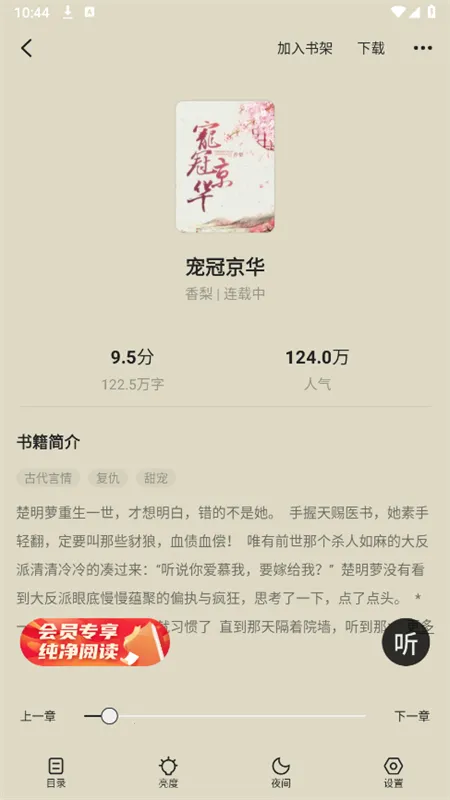 4. 阅读界面简洁舒适:整体设计注重简洁性与舒适度,提供友好的视觉体验与操作流畅感,长时间阅读也不会感到疲惫,尽享惬意阅读时光。