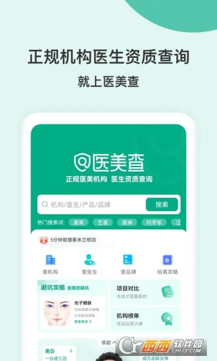 医美查是中整协互联网分会与新氧联合出品的医美服务平台,提供医疗机构与医生资质、舆情、口碑查询,医美仪器药品验真、项目报价、避坑攻略等服务,功能全且资源齐,助用户安心变美。