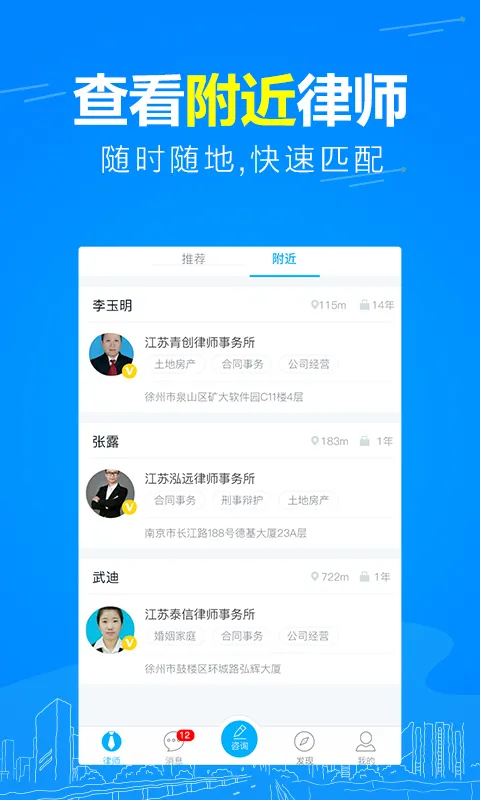 4. 深度优化程序缓存,减少流量使用,还能查看附近在线律师,及时高效解决法律问题。
