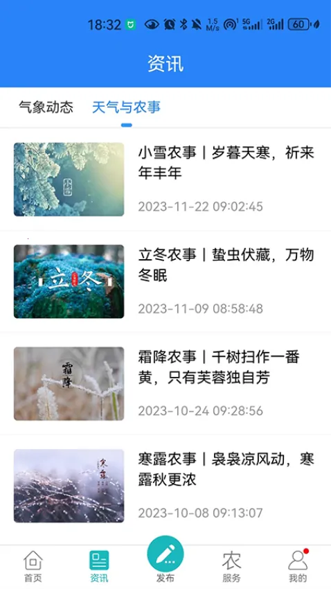 3. 拥有丰富的资讯信息,能让用户了解到更多有价值的气象动态、农事资讯,还能从中获取农业气象相关干货。
