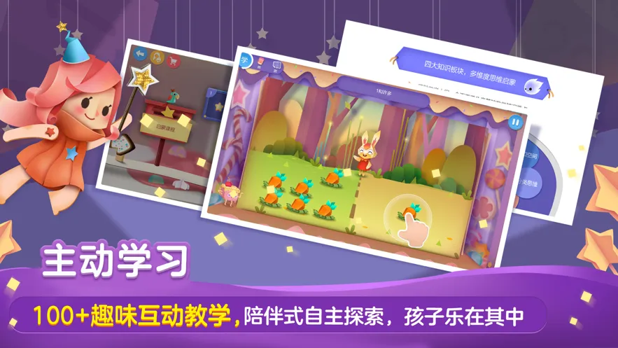 趣味学习体验:丰富奇幻场景搭配趣味卡通角色,还有经典横版关卡,让孩子越学越有趣,沉浸其中。