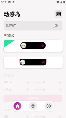 3. 能解锁灵动岛便捷玩法,自定义设置配置参数,自由调节动感岛位置和尺寸,还有音乐通知等小配置。