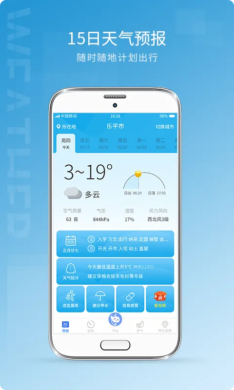 天气预报15日手机版是款受欢迎的气象服务软件。采用AI智能与权威多数据库,能提供未来15天准确天气,涵盖全国城市空气质量。有天气预警、简洁界面、生活建议、强大推送等特色,助用户出行无忧。