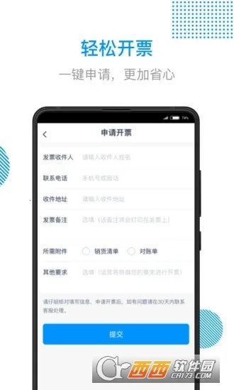 2. 发货开票支付便利,提升办公效率。支持在线一键申请开票,简化流程;能支付运费到指定账户,还可批量支付运费。