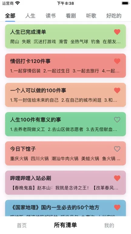 1. 丰富多样的清单列表:提供大量清单供借鉴参考,涵盖学习、旅行、体验等多种分类,满足不同需求,助你开启有意义的人生之旅。