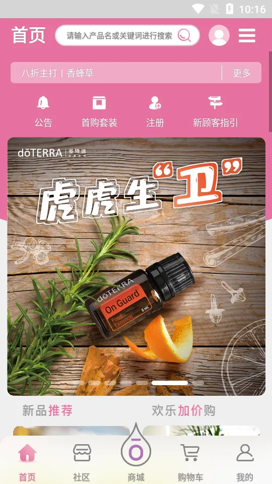 多特瑞App是一款精油采购平台,集购物、知识科普、社区互动于一体。精选大量精油商品,提供详细介绍与使用贴士,支持注册优惠顾客享专属权益,还有多种套装新品,保障品质,方便用户追求高品质精油生活。