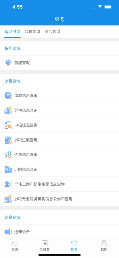 3. 功能板块丰富:设有首页、办税中心、综合服务、用户中心等,提供智慧便捷税务服务体验。