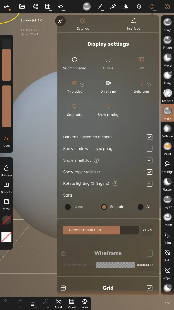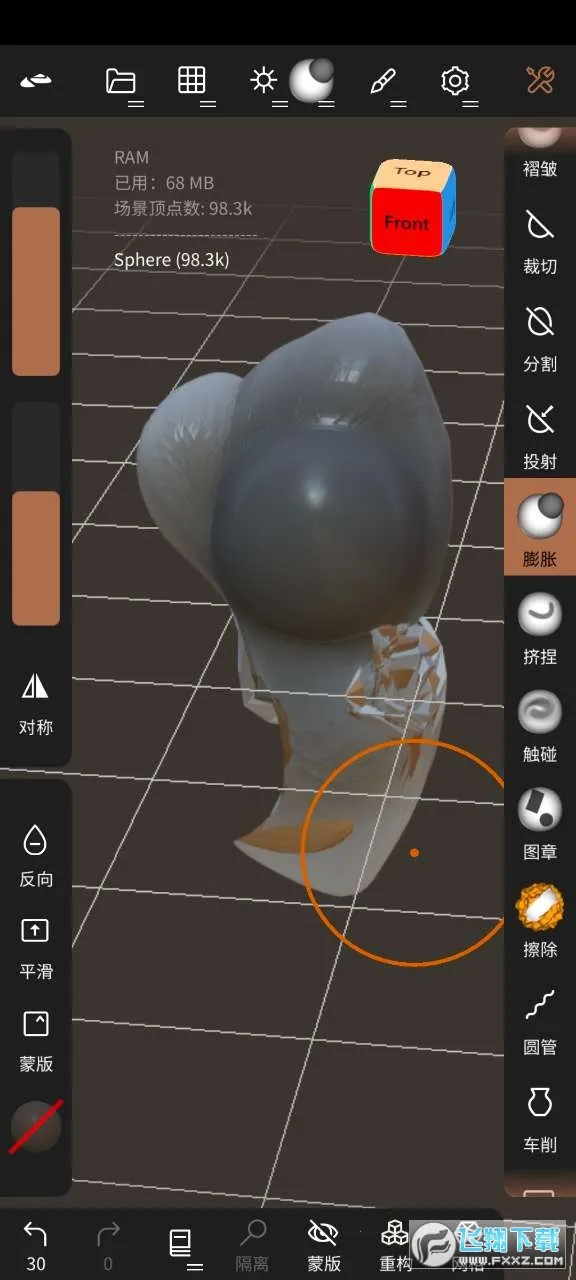 2. 工具丰富易创作:提供黏土、展平、平滑、遮罩等多种画笔工具,还有2D转3D功能,拓宽创作空间,满足各种材质需求。
