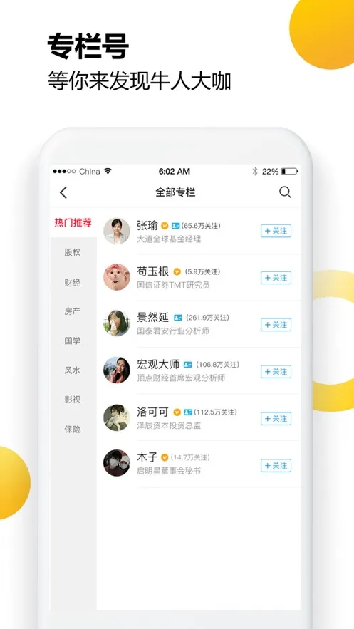 1. 专栏号丰富:能发现牛人大咖,可随时随地查阅沪深港股美股商品期货全球外汇五大市场行家的专栏文章和课程。