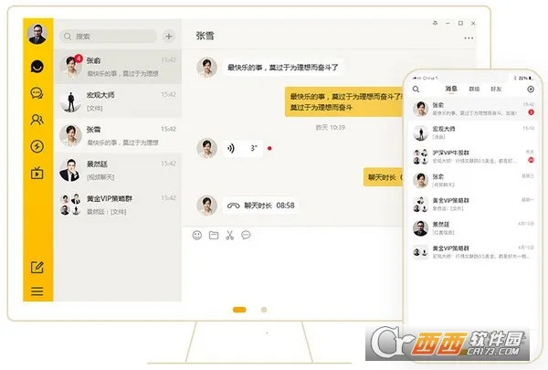 2. 沟通便捷:无论何时何地,都能在各类终端与好友自由沟通,已支持Windows电脑、苹果手机、安卓手机。