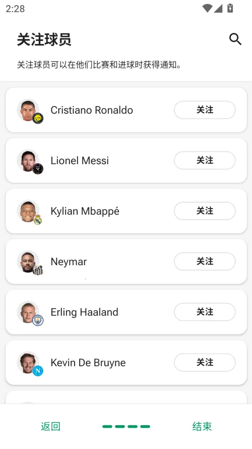 1. 个性化关注管理:可按喜好添加关注的联赛、球队、球员和比赛,定制推送内容,避免打扰。