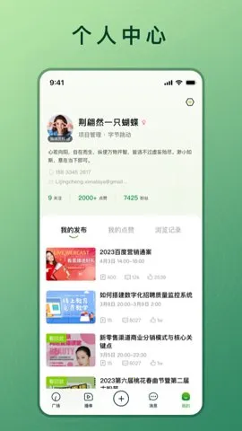 2. 拓展人脉:万千职业白领精英聚集地,真实企业组织互联,可关注互粉,一键发起会话。