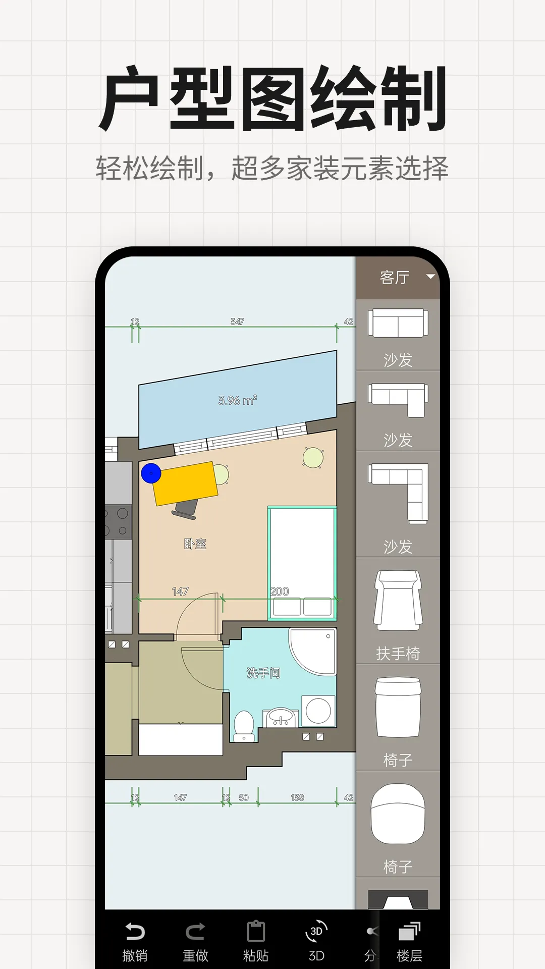 2. 编辑便捷,拥有简单易用的编辑工具,能让你轻轻松松完成平面图设计。