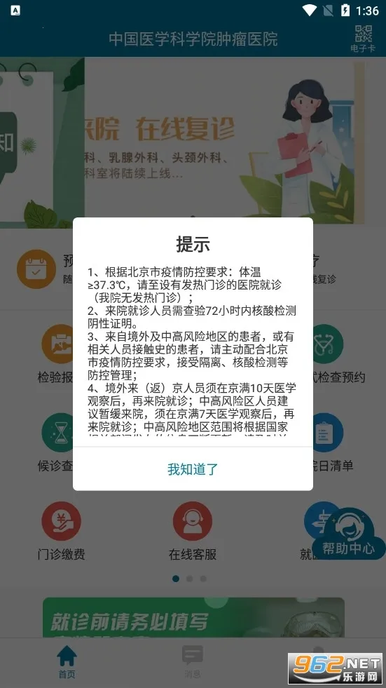便捷就医体验:通过官方 APP,患者能在线预约门诊挂号、办理电子就诊卡、查询健康报告、接收叫号提醒等。支持多患者用一个账号,还可查看检查报告、进行智能导诊,创建高效便捷的医疗服务环境。