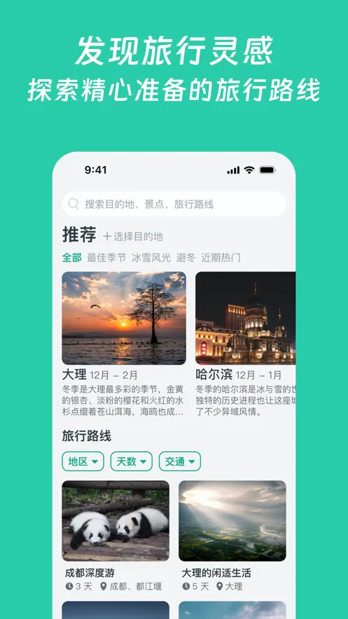 2. 目的地资讯丰富:收录全国近百个旅行目的地,提供丰富的旅行目的地资讯与旅行指南,方便快速浏览并加入旅行计划。