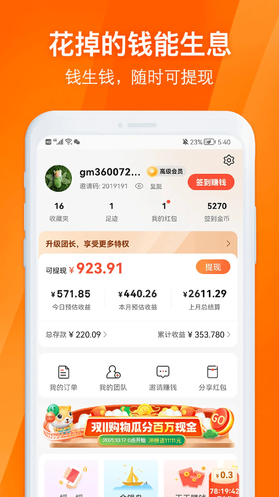 4. 玩法多样:分享商品、邀请好友均可赚钱,还有独特双重返利玩法。