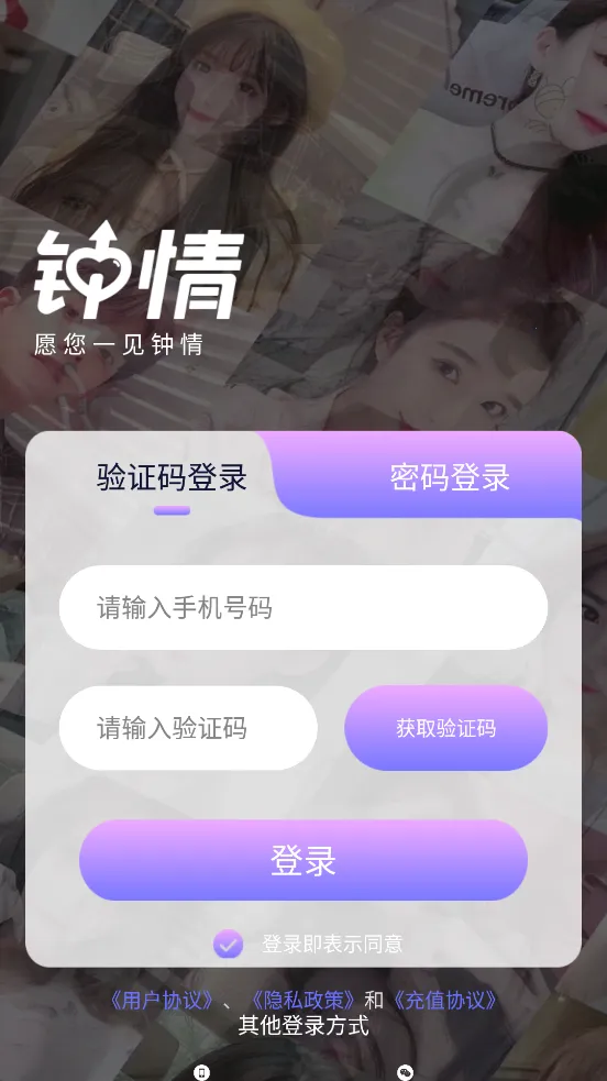 打开你的钟情App,在验证码登录界面输入手机号和验证码,点击下一步。