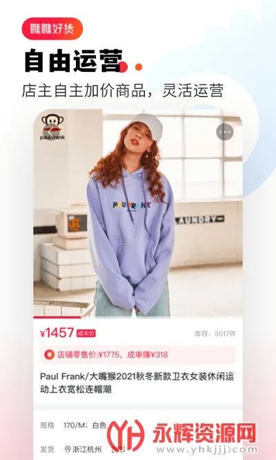 3. 创业机会轻松抓:这是个社交电商共享服务平台,赋能个人通过社群创业。店主入驻成功后,可自主选货、加价,管理店铺商品上下架、查看订单等,分享商品还能赚取额外收益,轻松实现创业梦想。