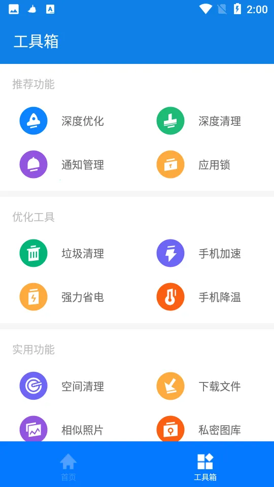 3. 功能超全面,集垃圾清理、内存加速、隐私保护、省电管理等多种功能于一体,能深度释放手机空间与性能,显著提升运行速度与响应灵敏度。
