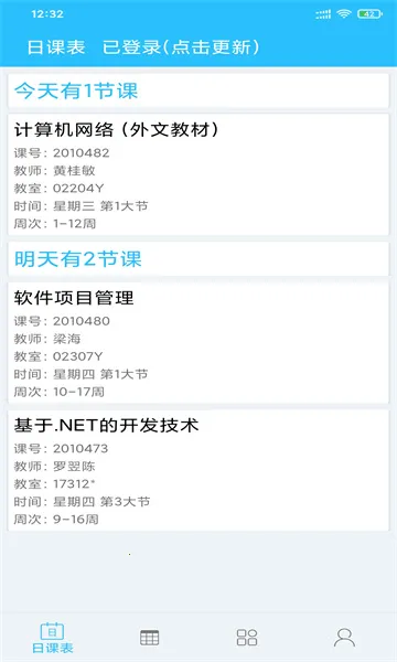 桂电课程表手机版真的超棒!它能一键导入课程表,方便又快捷。每天提前提醒上课时间和教室,再也不用担心上错课。而且功能超丰富,成绩、考场信息、实验结果等都能查,还有一键评教功能。界面简洁,操作轻松。自动同步课程,课程调整也不会错过。自定义课表很贴心,能根据自己需求设置。全新登录逻辑提升了同步效率,还支持智慧校园免登陆访问。有了它,校园学习生活变得更有序、高效,强烈推荐给桂电的小伙伴们!
