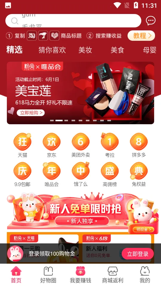 粉兔2025官方正版是一款全网全品类社交导购APP,持续优化90后网购体验。有超萌界面,能领券下单拿返利,精选主流电商平台,商品繁多且实时更新,还能参与免单活动,自用省钱分享赚钱。