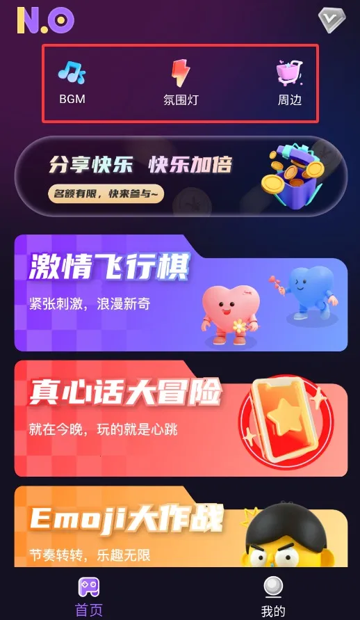N.O 是一款免费软件,集成多种小游戏,操作简单。有飞行棋等经典游戏,支持联机对战。还有 BGM 音乐库和氛围灯功能,可自定义调节,适合无聊或聚会时玩,能轻松打发时间、缓解压力。
