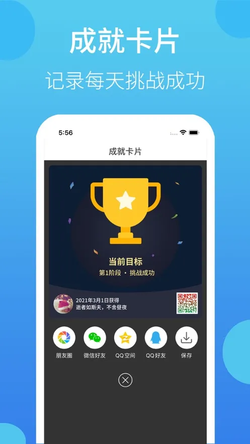 成就卡片记录:挑战成功后能一键获取成就卡片,方便查看自己的挑战成果。