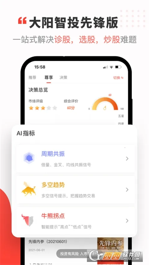 专业决策依据:提供智能诊股、选股、指标、相似K线等功能,为投资者提供专业、高效、科学的决策依据,提高实战效率,降低决策成本。