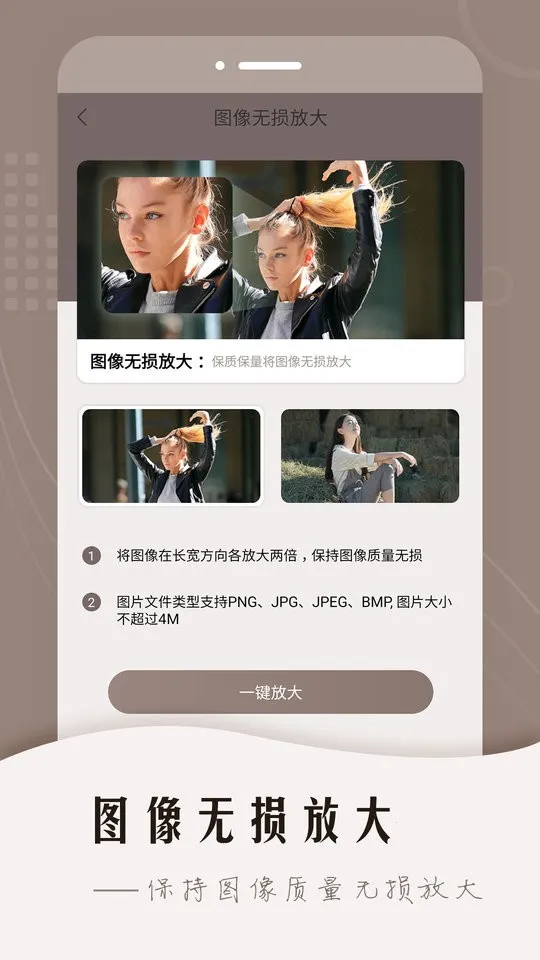 老照片智能修复软件能帮您解决老照片修复难题。它基于领先的AI图像生成技术,可对残破模糊的黑白老照片进行高清还原和上色修复。比如,能把模糊照片、低清照片的斑驳痕迹修复,还能对人脸进行高清还原。通过AI一键给黑白老照片上色,精准还原符合场景的色彩。对浓雾天气下拍摄导致细节无法辨认的图像可去雾处理,也能对分辨率低的老照片进行无损放大。操作很简单,用手机就能快速扫描照片。从相册找到老照片,点击老照片修复,选择立即去修复,再点击需要修复的老照片,根据个人需求裁剪就行。无损放大也容易操作,进入主界面点击无损放大,选中图片选放大倍数即可。有了它,轻松就能让老照片焕发新光彩,留住美好回忆。