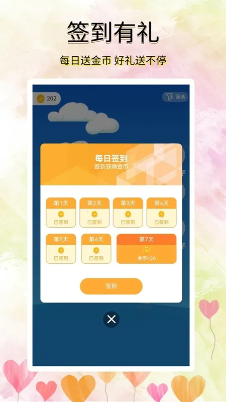 2. 每日签到奖励:签到领金币,可兑换精美礼品。