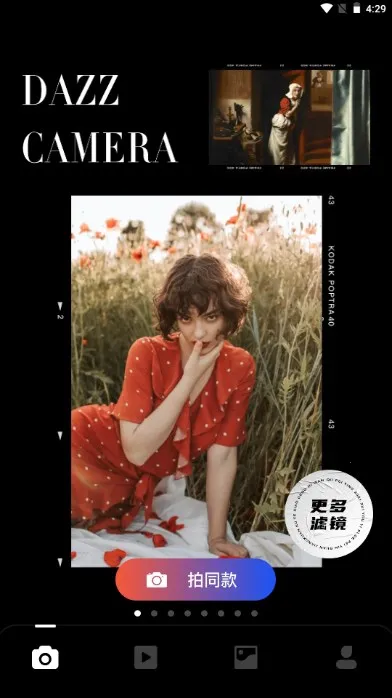 Dazz相机安卓版是一款复古胶片摄影App,高度拟真还原胶片效果。有多种滤镜、风格,支持双重曝光、定时自拍等。还具备丰富拍摄及后期编辑功能,操作简单,能让用户轻松拍出有艺术感和怀旧氛围的照片。