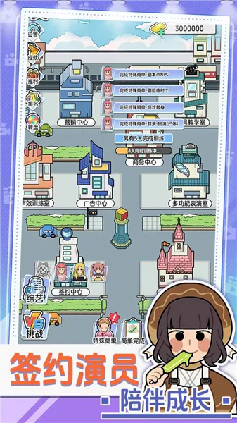 2、演员个性养成:每位演员性格天赋各异,通过多维度培训提升能力,维护好感度防罢演或被挖角。