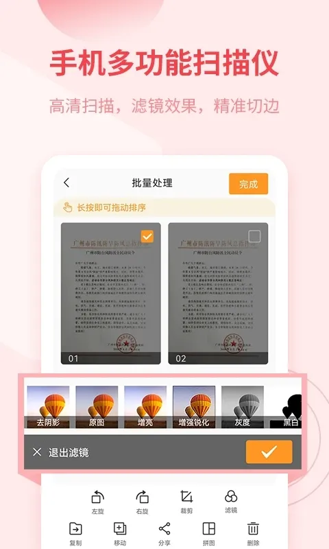 1. 智能裁剪技术:自动识别文档边界,精准切除多余背景,保留主体内容,减少手动调整步骤,提高处理速度与成品整洁度。