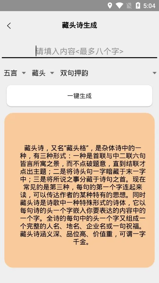 2. 界面简洁直观,古诗生成操作简单便捷,创作初学者也能快速上手。