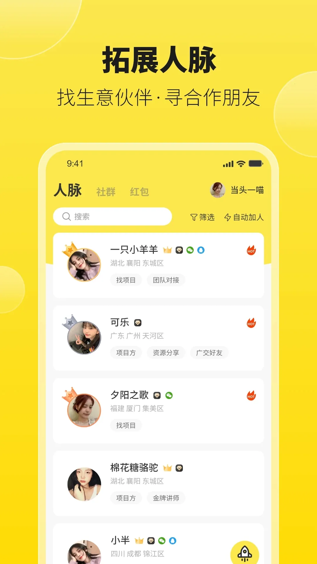 1、人脉扩充超便捷:能随时随地在聊天中扩充人脉与交友圈,线上线下联动找人脉,助您轻松挖掘身边人脉,快速拓展社交圈。