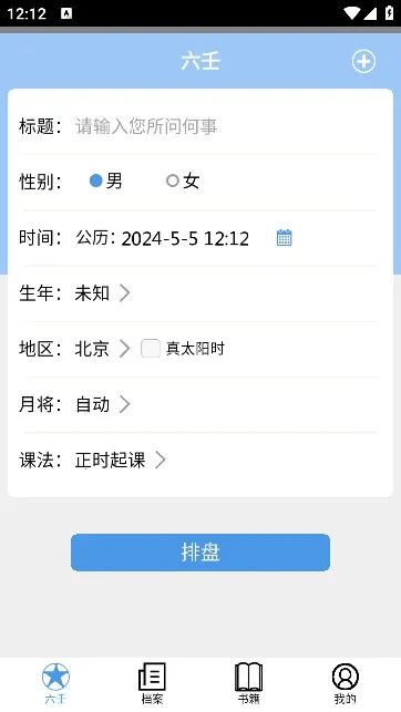 大师六壬2026最新版本是专业手机端排盘软件,支持多种起课方式,结合古籍精髓。有强大排盘等功能,提供多样排盘方式、详细六壬信息及古籍资源,方便用户轻松排盘、了解运势、提升认知。