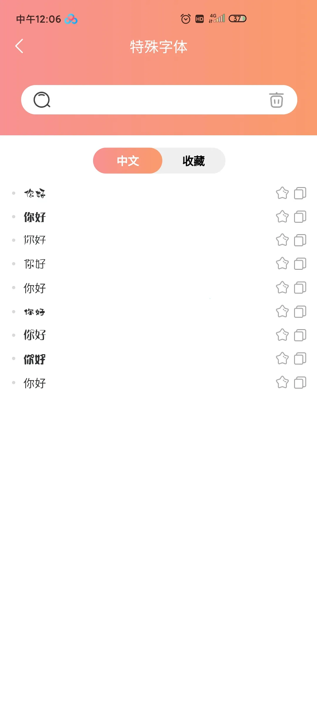 特殊字体秀秀最新手机版是专为安卓用户打造的字体美化软件。有多样字体、颜文字,可一键搜索切换。含海量热词创意句子,操作灵活能编辑图片文字,字体免费下载,还适配多品牌手机,功能丰富便捷。