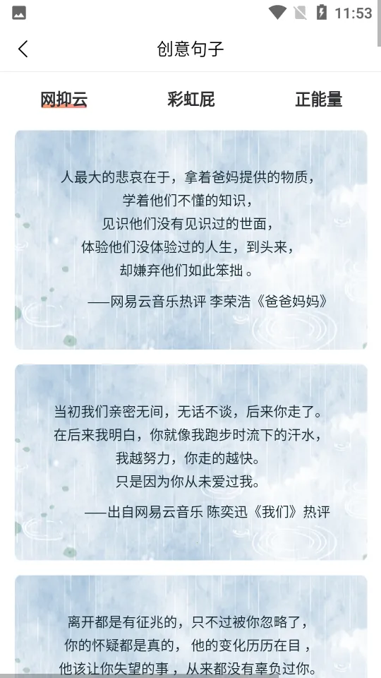 3. 紧跟潮流热点:包含多个网络热词的解释和来源,还有海量热词创意句子实时分享,能让用户紧跟潮流顶端,变得更加时尚。