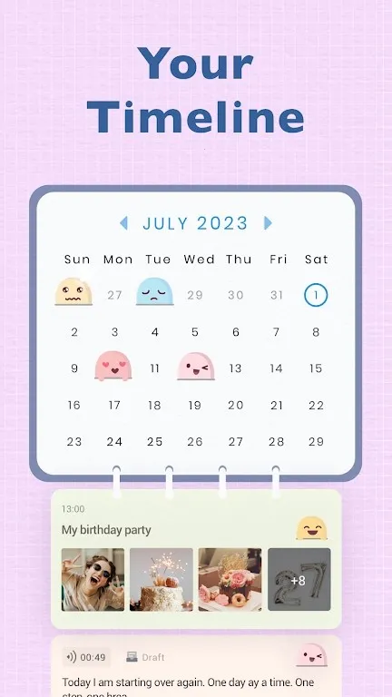 2. 丰富自定义:提供多种精致日记主题,支持添加字体效果、可爱贴纸等,可自由打造个性化日记页面,使每篇日记都生动迷人。