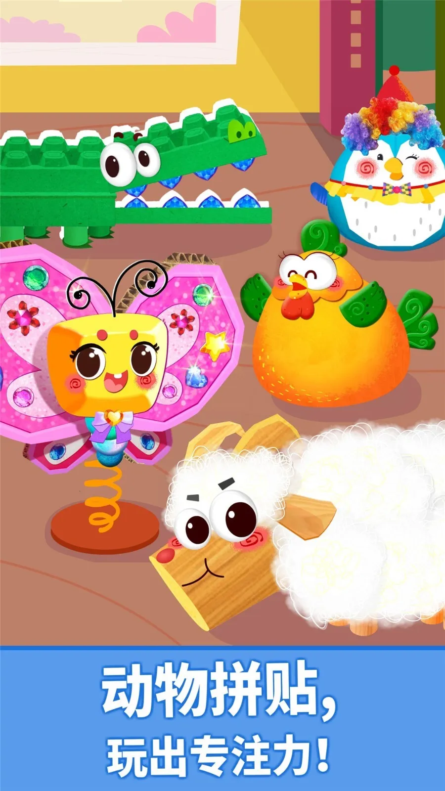 宝宝动物拼贴2025官方最新版是一款针对幼龄儿童的早教游戏。通过拼贴动物,锻炼动手与想象能力,还有亲子协作玩法。涵盖多种创意DIY,如纸盒变鳄鱼等,依幼儿发育特点设计,助孩子快乐启蒙。
