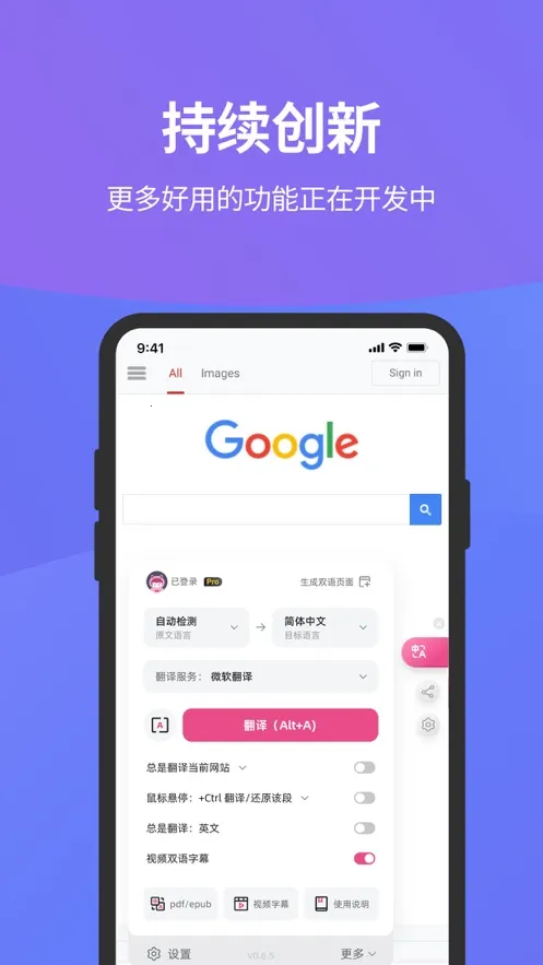 沉浸式翻译软件超棒!它能解决用户多语言翻译难题。支持轻松高效翻译多种语言,实现全局翻译,一键打开悬浮球就能在任意应用里翻译。网页翻译让你实时搞定网页内容;还有AI专家,设定行业身份可实现特定领域翻译。能设置自定义术语库,快速精准翻译常用特定术语。提供AI字幕,可随心查看双语字幕。输入框翻译也很方便,输入文字一键翻译。特色是多种语言都能翻,还能深度定制主流网站翻译。优势在于内置多功能AI翻译模型,翻译精准流畅,能帮用户无障碍沟通交流。不管是学习外语、旅游还是商务场景,它都很实用,能帮你高效阅读外文信息,轻松解决语言障碍,赶紧来试试吧!