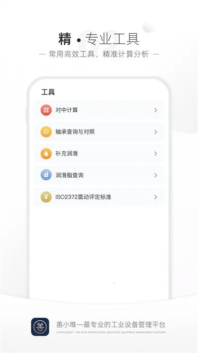 这软件专为工业设备管理打造,实现了软件平台化架构,提供便捷的数据来源与展示。有设备状态监测功能,精准监控设备工作状态,实时预警,避免故障停机。点巡检功能为你规划科学化项目和路线,到期未检还有风险提示。维修保养功能规范维修数据,关联施工安全事项,规避风险。综合报表能多角度分析设备、人员巡检维修等数据,提供决策参考。还有多项实用工具,让工业维保更轻松。它与PC端功能同步,真正实现移动办公,数据异常及时提醒。更新日志显示不断优化,像v3.3.20版本又新增了点巡检位移算法切换等功能。有了善小维,设备管理超省心!
