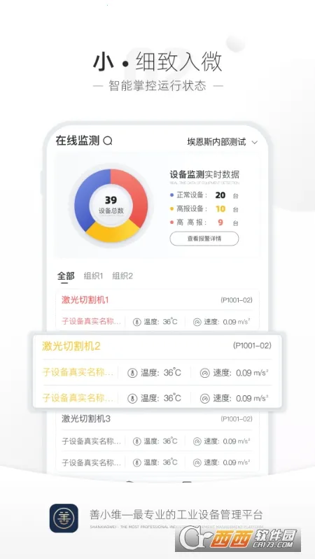 善小维是一款针对工业设备的AES设备管理软件,可随时了解设备运行状态,实现数据管理。故障时及时报警,还有状态监测、巡检、维修保养等功能,提供方便快捷的数据来源与展示,助力智能管理。