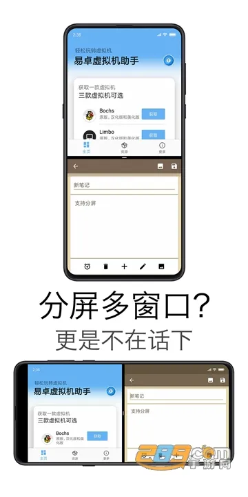 易卓虚拟机助手能满足开发、测试需求,还能让你在一台手机中享受不同系统。它支持手机后台运行,可自由切换分辨率,适应不同屏幕。使用方法简单:先下载安装 app,进入后在首页点击三款虚拟机任意一款获取,比如以 bochs 为例,进入点击下载,完成后点击启动即可。软件优势明显,深度系统隔离,避免数据交叉污染;一键系统重置,解决卡顿;多版本系统兼容,适配各类应用;后台智能托管,主系统锁屏也能挂机;支持跨设备数据迁移。软件亮点众多,能展示详细手机信息,支持真机虚拟机互传文件,有虚拟系统密码锁定、参数随意调整等功能,还支持多个机型。总之,它功能全面,操作便捷,能一站式满足各种需求,值得一试。