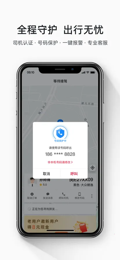 3. 全方位安全保障:营运新车全配备百万级乘车险,还有号码保护及一键报警功能。