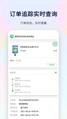 智能配送系统,基于用户位置智能分配最近水站,实时跟踪配送进度,预估送达时间准确。